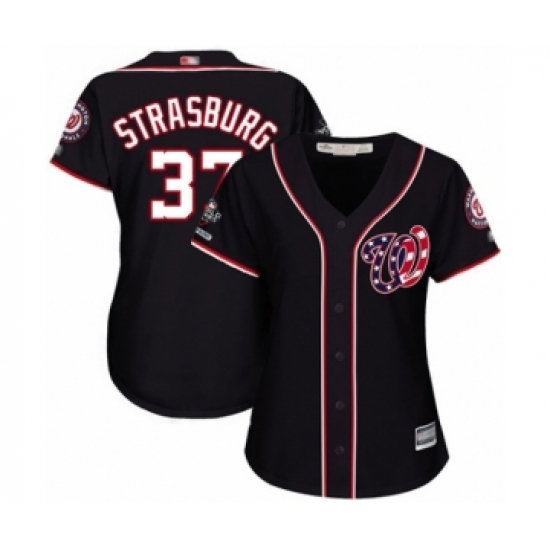 Women's Washington Nationals #37 Stephen Strasburg Authentic Navy Blue Alternate 2 Cool Base 2019 World Series Champions Baseball Jersey