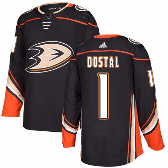 Men's Adidas Anaheim Ducks #1 Lukas Dostal Authentic Black 1917-2017 100th Anniversary NHL Jersey