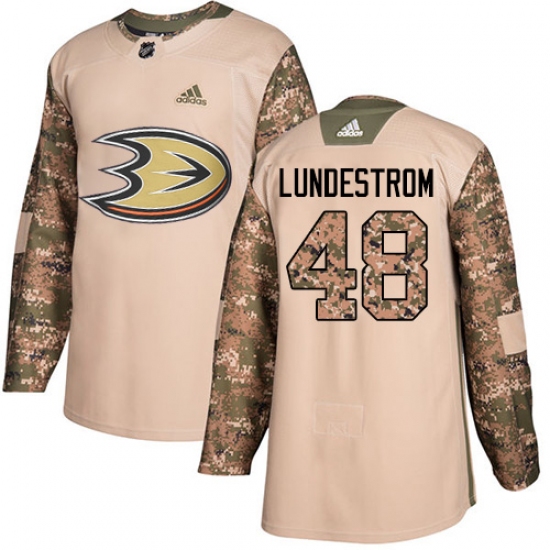 >Youth Adidas Anaheim Ducks #48 Isac Lundestrom Authentic Camo Veterans Day Practice NHL Jersey