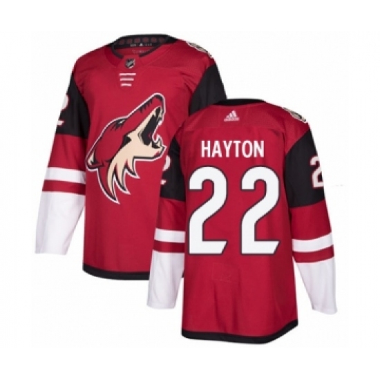 >Youth Adidas Arizona Coyotes #22 Barrett Hayton Premier Burgundy Red Home NHL Jersey