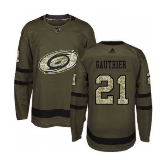 >Youth Adidas Carolina Hurricanes #21 Julien Gauthier Premier Green Salute to Service NHL Jersey