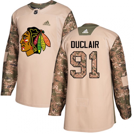 >Youth Adidas Chicago Blackhawks #91 Anthony Duclair Authentic Camo Veterans Day Practice NHL Jersey