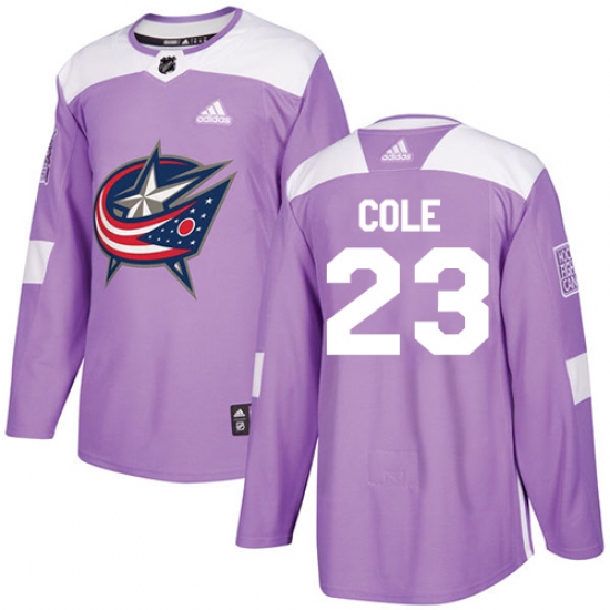Men's Adidas Columbus Blue Jackets #23 Ian Cole Authentic Purple Fights Cancer Practice NHL Jersey