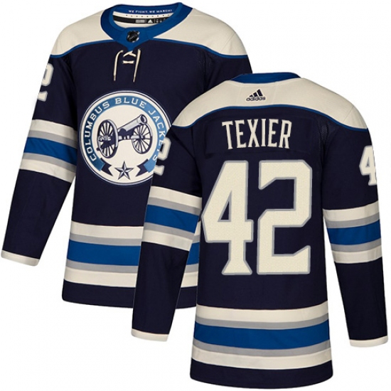 Men's Adidas Columbus Blue Jackets #42 Alexandre Texier Authentic Navy Blue Alternate NHL Jersey