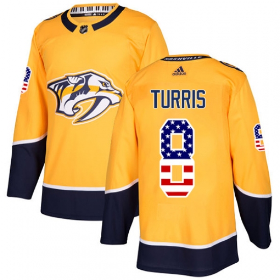 >Youth Adidas Nashville Predators #8 Kyle Turris Authentic Gold USA Flag Fashion NHL Jersey