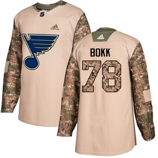 >Youth Adidas St. Louis Blues #78 Dominik Bokk Authentic Camo Veterans Day Practice NHL Jersey