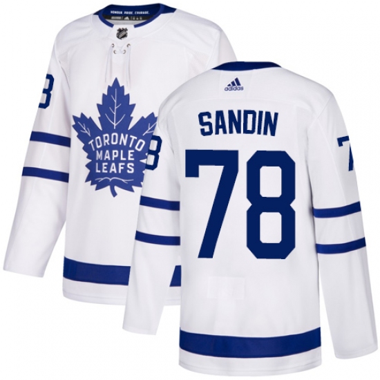 >Youth Adidas Toronto Maple Leafs #78 Rasmus Sandin Authentic White Away NHL Jersey