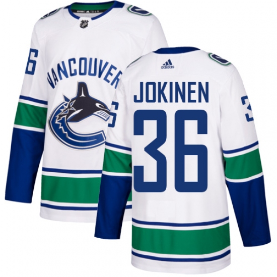 >Youth Adidas Vancouver Canucks #36 Jussi Jokinen Authentic White Away NHL Jersey