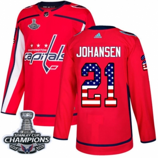 >Youth Adidas Washington Capitals #21 Lucas Johansen Authentic Red USA Flag Fashion 2018 Stanley Cup Final Champions NHL Jersey