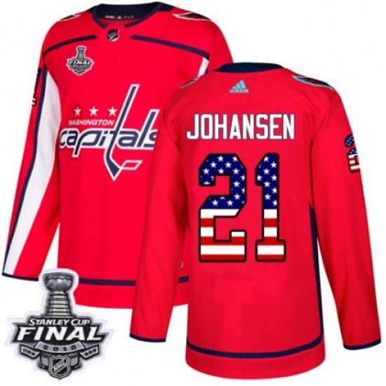 Youth Adidas Washington Capitals #21 Lucas Johansen Authentic Red USA Flag Fashion 2018 Stanley Cup Final NHL Jersey