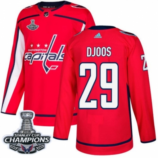 Men's Adidas Washington Capitals #29 Christian Djoos Premier Red Home 2018 Stanley Cup Final Champions NHL Jersey