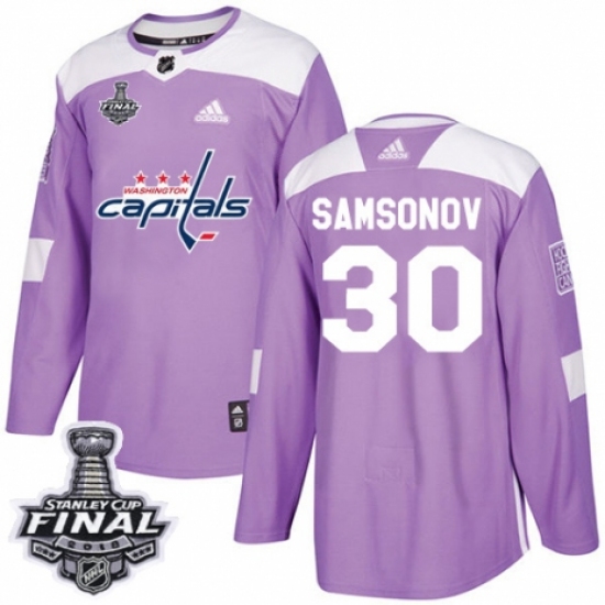 Youth Adidas Washington Capitals #30 Ilya Samsonov Authentic Purple Fights Cancer Practice 2018 Stanley Cup Final NHL Jersey