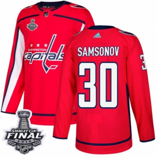 Men's Adidas Washington Capitals #30 Ilya Samsonov Premier Red Home 2018 Stanley Cup Final Champions NHL Jersey