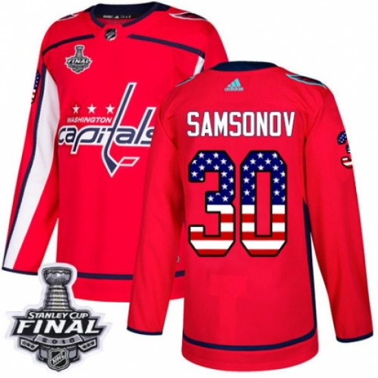 Youth Adidas Washington Capitals #30 Ilya Samsonov Authentic Red USA Flag Fashion 2018 Stanley Cup Final NHL Jersey