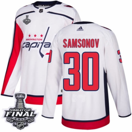 Youth Adidas Washington Capitals #30 Ilya Samsonov Authentic White Away 2018 Stanley Cup Final NHL Jersey