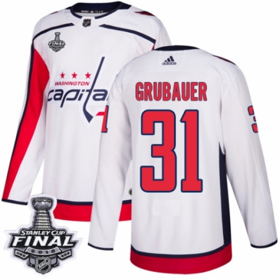 Youth Adidas Washington Capitals #31 Philipp Grubauer Authentic White Away 2018 Stanley Cup Final NHL Jersey