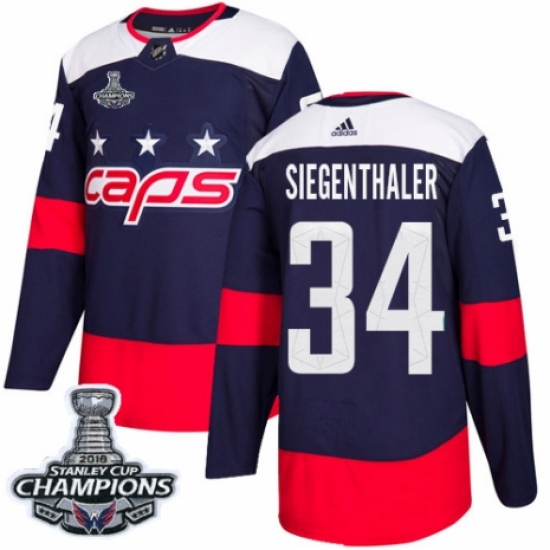 >Youth Adidas Washington Capitals #34 Jonas Siegenthaler Authentic Navy Blue 2018 Stadium Series 2018 Stanley Cup Final Champions NHL Jersey