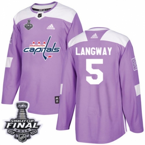 Men's Adidas Washington Capitals #5 Rod Langway Authentic Purple Fights Cancer Practice 2018 Stanley Cup Final Champions NHL Jersey