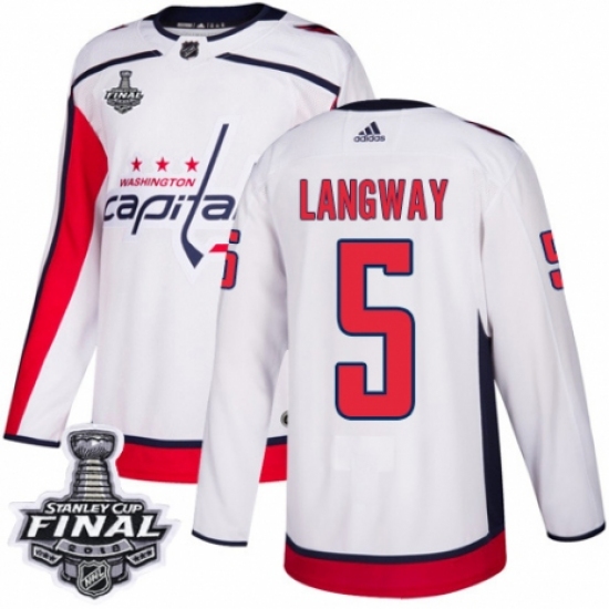 Youth Adidas Washington Capitals #5 Rod Langway Authentic White Away 2018 Stanley Cup Final NHL Jersey
