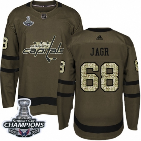 Youth Adidas Washington Capitals #68 Jaromir Jagr Authentic Green Salute to Service 2018 Stanley Cup Final Champions NHL Jersey