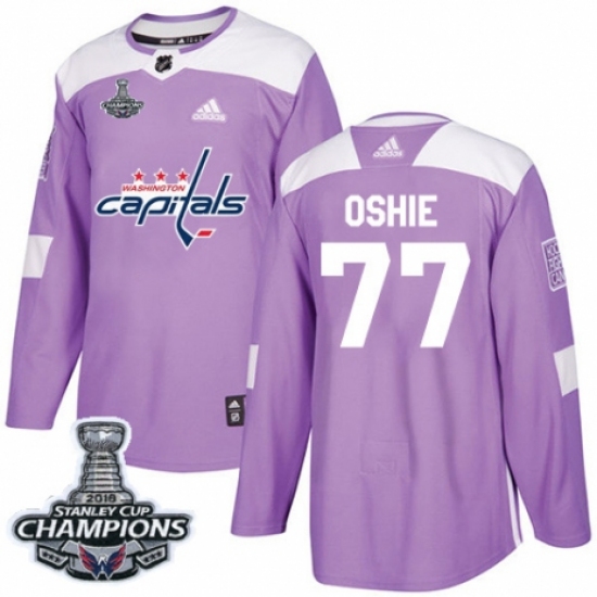 >Youth Adidas Washington Capitals #77 T.J. Oshie Authentic Purple Fights Cancer Practice 2018 Stanley Cup Final Champions NHL Jersey