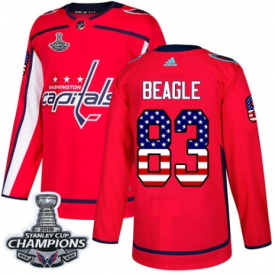 Women's Adidas Washington Capitals #83 Jay Beagle Authentic Red USA Flag Fashion 2018 Stanley Cup Final Champions NHL Jersey