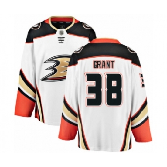 Men's Anaheim Ducks #38 Derek Grant Authentic White Away Fanatics Branded Breakaway Hockey Jersey