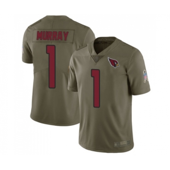 >Youth Arizona Cardinals #1 Kyler Murray Limited Olive 2017 Salute to Service Football Jersey
