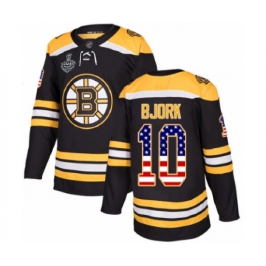 >Youth Boston Bruins #10 Anders Bjork Authentic Black USA Flag Fashion 2019 Stanley Cup Final Bound Hockey Jersey
