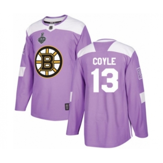 >Youth Boston Bruins #13 Charlie Coyle Authentic Purple Fights Cancer Practice 2019 Stanley Cup Final Bound Hockey Jersey