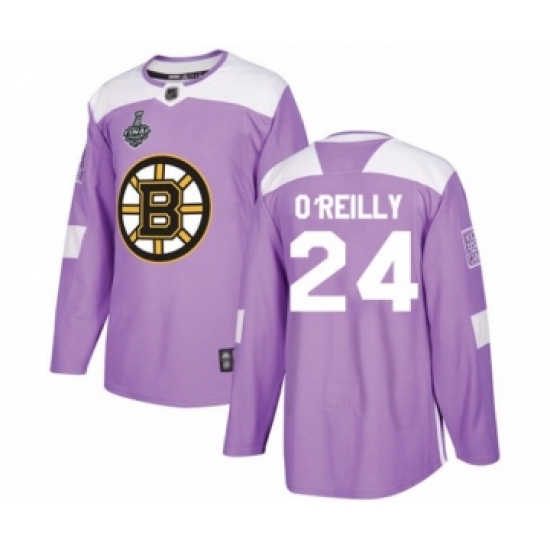 >Youth Boston Bruins #24 Terry O'Reilly Authentic Purple Fights Cancer Practice 2019 Stanley Cup Final Bound Hockey Jersey