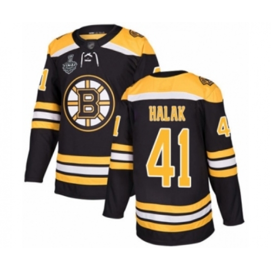 >Youth Boston Bruins #41 Jaroslav Halak Authentic Black Home 2019 Stanley Cup Final Bound Hockey Jersey