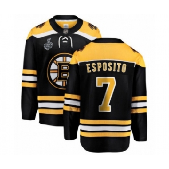 >Youth Boston Bruins #7 Phil Esposito Authentic Black Home Fanatics Branded Breakaway 2019 Stanley Cup Final Bound Hockey Jersey