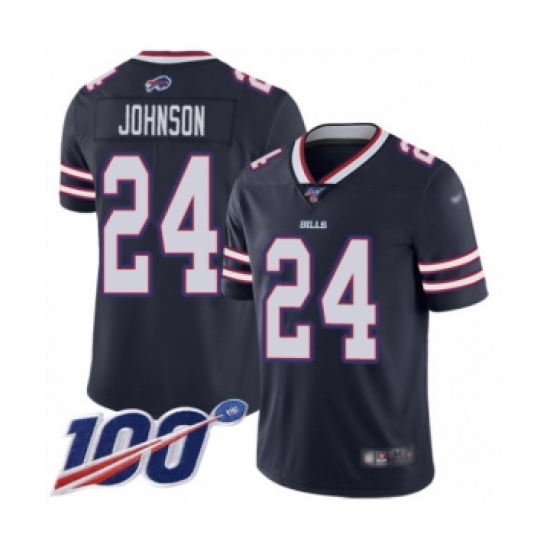 >Youth Buffalo Bills #24 Taron Johnson Limited Navy Blue Inverted Legend 100th Season Football Jersey