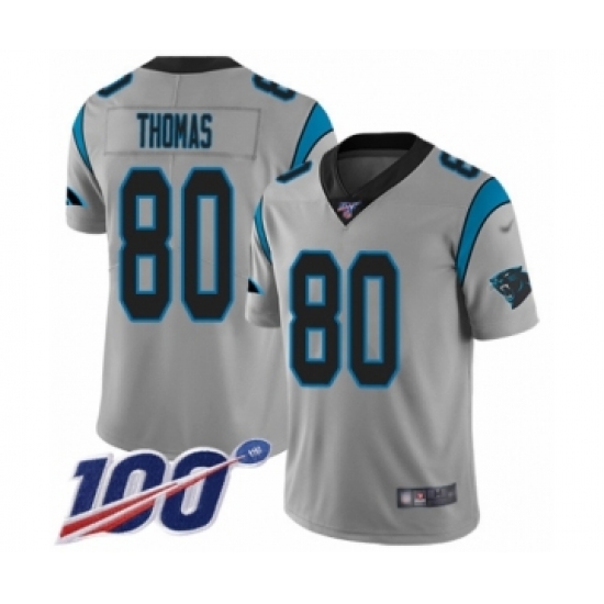 Youth Carolina Panthers #80 Ian Thomas Silver Inverted Legend Limited 100th Season Football Jersey