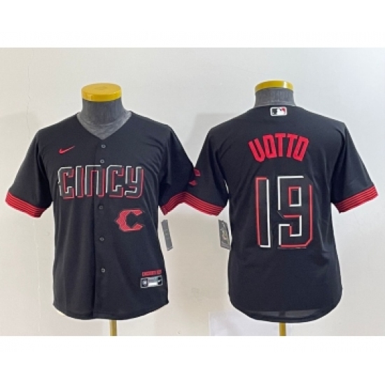 Youth Cincinnati Reds #19 Joey Votto Black 2023 City Connect Cool Base Stitched Jersey1
