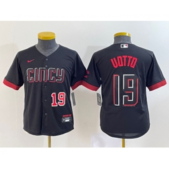 Youth Cincinnati Reds #19 Joey Votto Number Black 2023 City Connect Cool Base Stitched Jersey