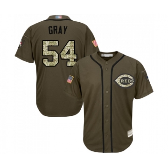 >Youth Cincinnati Reds #54 Sonny Gray Authentic Green Salute to Service Baseball Jersey