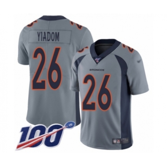 >Youth Denver Broncos #26 Isaac Yiadom Limited Silver Inverted Legend 100th Season Football Jersey