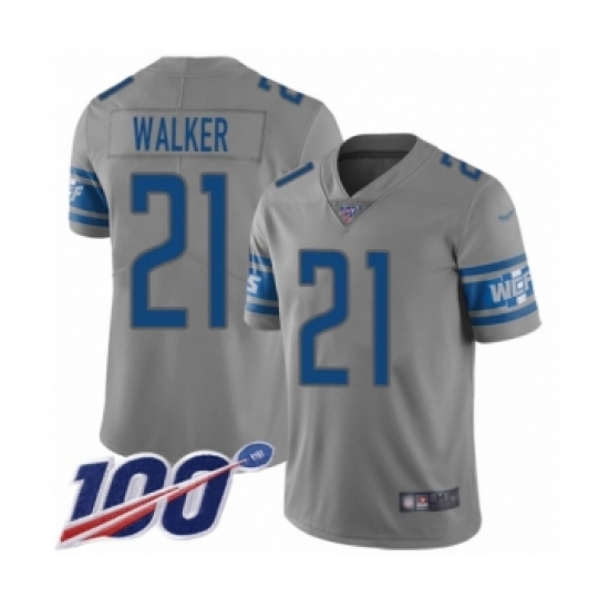 >Youth Detroit Lions #21 Tracy Walker Limited Gray Inverted Legend 100th Season Football Jersey