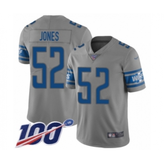 >Youth Detroit Lions #52 Christian Jones Limited Gray Inverted Legend 100th Season Football Jersey
