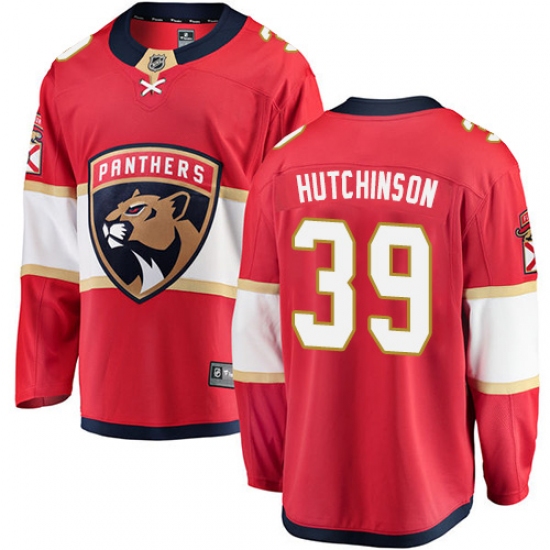 >Youth Florida Panthers #39 Michael Hutchinson Authentic Red Home Fanatics Branded Breakaway NHL Jersey