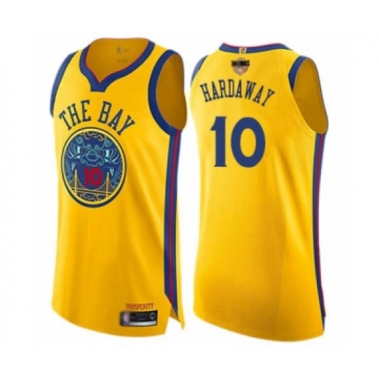 Men's Golden State Warriors #10 Tim Hardaway Swingman Gold 2019 Basketball Finals Bound Basketball Jersey - City Edition