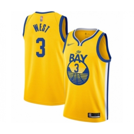 Youth Golden State Warriors #3 David West Swingman Gold Finished Basketball Jersey - Statement Edition