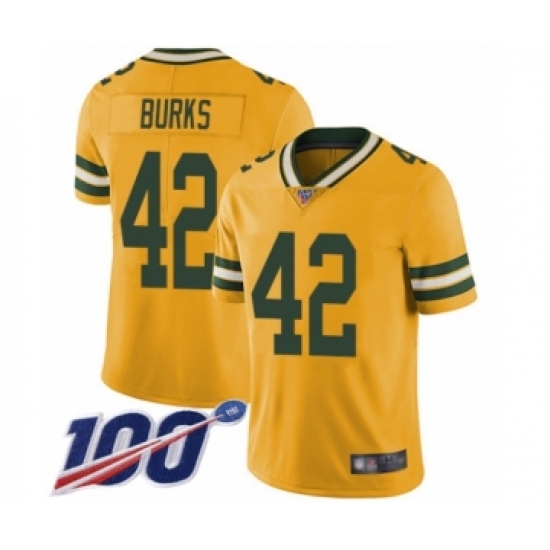 >Youth Green Bay Packers #42 Oren Burks Limited Gold Rush Vapor Untouchable 100th Season Football Jersey