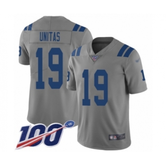 >Youth Indianapolis Colts #19 Johnny Unitas Limited Gray Inverted Legend 100th Season Football Jersey