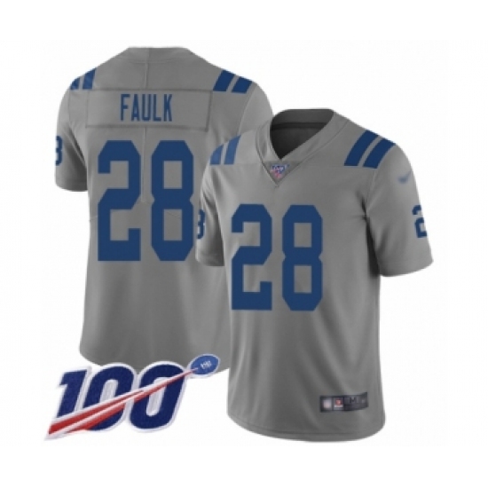 >Youth Indianapolis Colts #28 Marshall Faulk Limited Gray Inverted Legend 100th Season Football Jersey