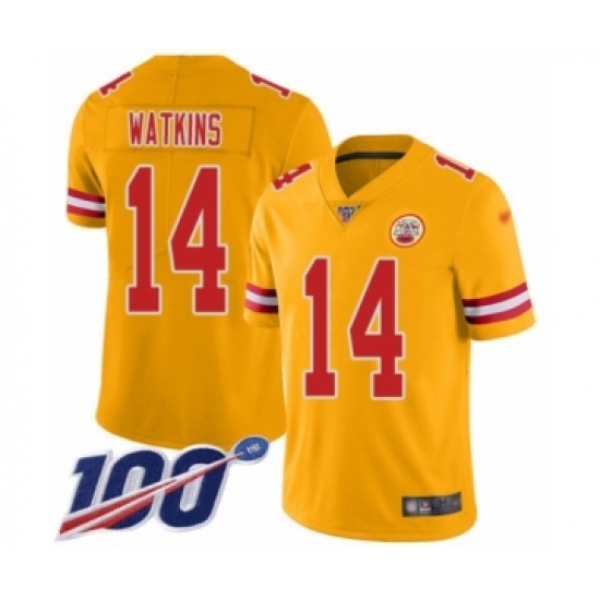 >Youth Kansas City Chiefs #14 Sammy Watkins Limited Gold Inverted Legend 100th Season Football Jersey