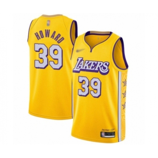 >Youth Los Angeles Lakers #39 Dwight Howard Swingman Gold Basketball Jersey - 2019 20 City Edition