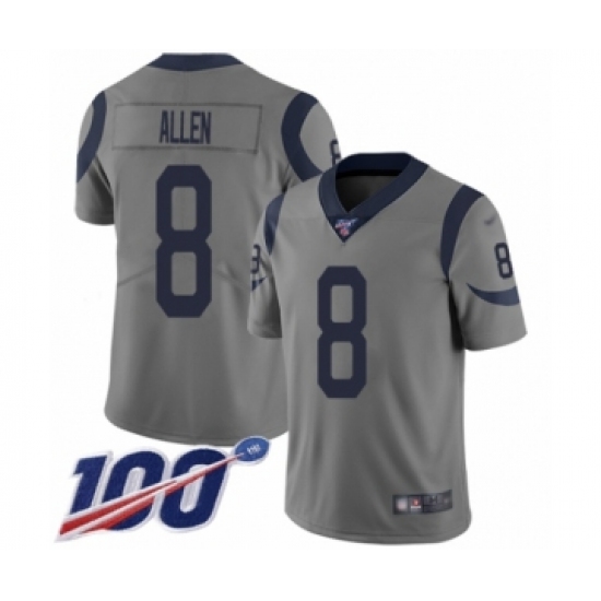 >Youth Los Angeles Rams #8 Brandon Allen Limited Gray Inverted Legend 100th Season Football Jersey